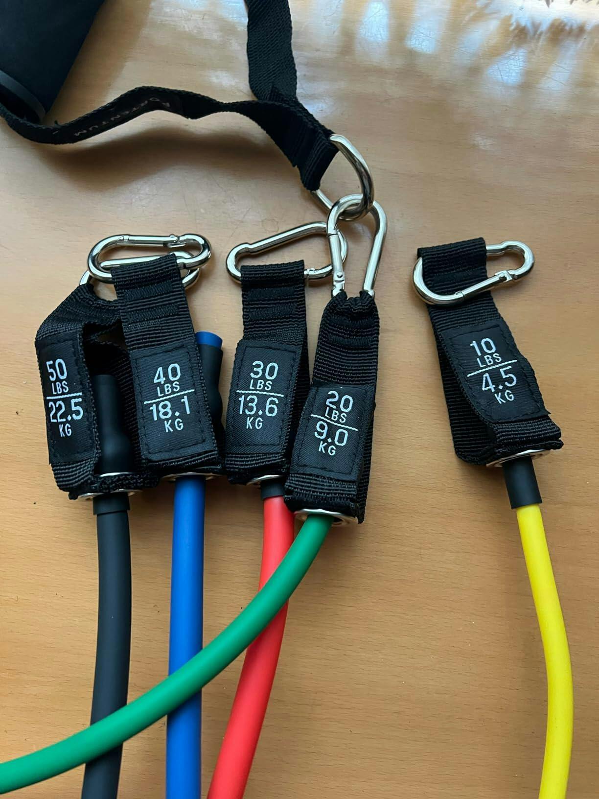 Choose your intensity or combine bands to reach up to 150 lbs (68 kg) total resistance: